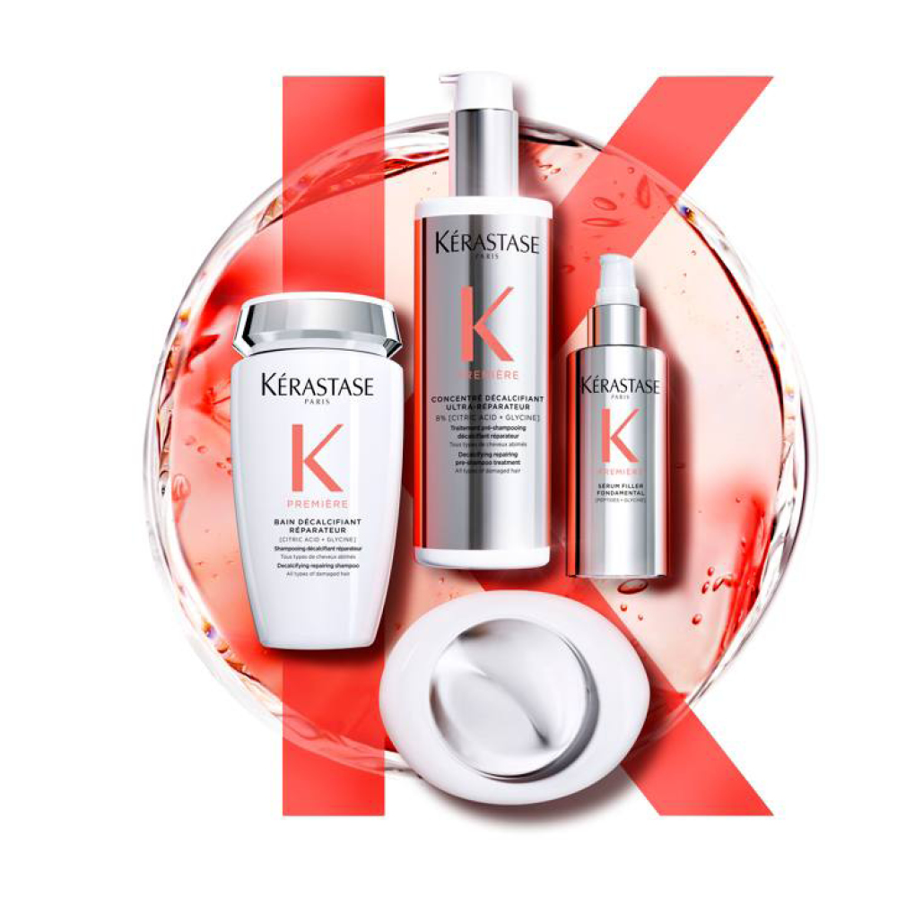 C’est en superposant le Concentré Ultra-réparateur Première avec le Bain décalcifiant qu’on élimine de manière optimale les dépôts de calcium à l’extérieur et à l’intérieur de la fibre capillaire pour un cheveu réparé dès la première utilisation !